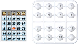 - Maszyna losująca, 80 kulek, 20 kart, tablica na wylosowane liczby, instrukcja