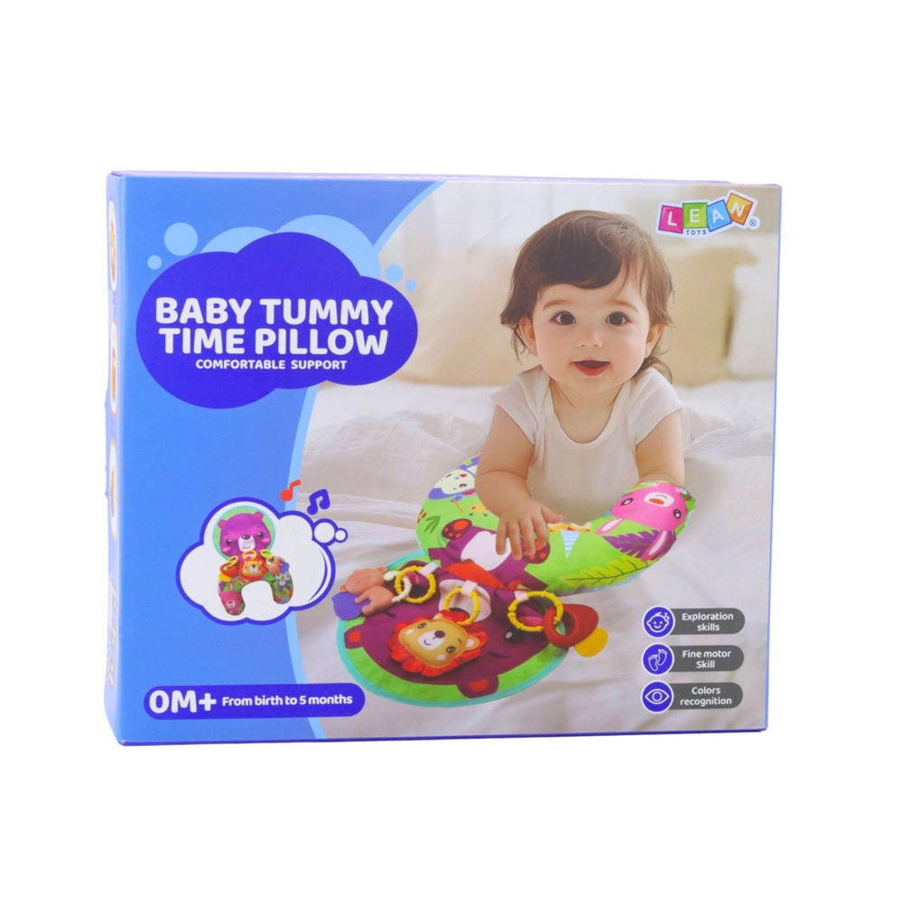 Miękka poduszka podpierająca dla niemowląt pomaga w treningu leżenia na brzuszku i wzmacnia mięśnie karku, ramion i pleców. W zestawie znajdują się 3 odpinane zawieszki o różnych kształtach i kolorach dla rozwoju motoryki małej oraz szeleszcząca mata z motywem liska dla stymulacji sensorycznej i nauki związku przyczyna–skutek. Idealna jako prezent dla noworodka i praktyczna pomoc do codziennej zabawy i rozwoju.