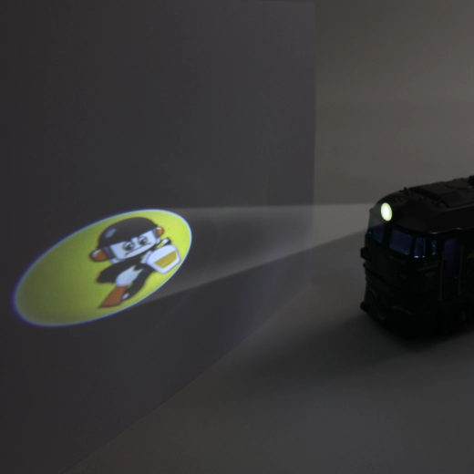 Ta zielona lokomotywa ucieszy małych i dużych miłośników kolei. Dzięki wiernym efektom świetlnym i dźwiękowym przypomina prawdziwy pociąg, a jej projektor wyświetla obraz na ścianie, intensyfikując wrażenia z zabawy. Napęd bezwładnościowy zapewnia płynny ruch bez skomplikowanego sterowania.