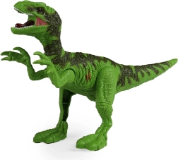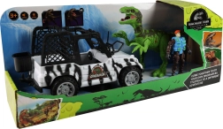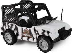Wyrusz do świata prehistorycznych przygód. Terenowe auto o długości 21 cm jeździ na wolnym biegu, dzięki czemu idealnie nadaje się do szybkich pościgów w pokoju i w ogrodzie. Realistyczny dinozaur zachwyca świecącymi efektami i rykiem, aktywowanymi po naciśnięciu przycisku, a jego ruchome kończyny dodają autentyczności.