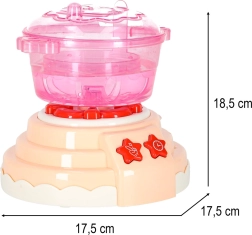 Zestaw wykonano z bezpiecznych, nietoksycznych materiałów i jest odpowiedni dla dzieci od 3 lat. Interaktywna podstawa z diodami LED i odgłosami gotowania potęguje wrażenia, a jednocześnie zapewnia całkowicie bezpieczną zabawę w małego kucharza. Kreatywne eksperymentowanie wspiera motorykę małą, integrację sensoryczną oraz dziecięcą wyobraźnię.
