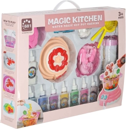 Magiczna kuchnia to interaktywny zestaw kreatywny inspirowany azjatyckim hotpotem. Do garnka ze specjalnym roztworem wodnym wkładasz foremki wypełnione żelem i w ciągu kilku sekund powstają oryginalne figurki 3D. Dzięki 12 odcieniom żeli możesz dowolnie mieszać kolory i tworzyć własne kombinacje.