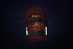 Stylowy zestaw szkolny z motywem HARRY POTTER obejmuje lekki i pojemny plecak Skate, praktyczny piórnik etui oraz wytrzymały worek na obuwie/sport. Plecak z recyklingowanego, wodoodpornego materiału oferuje 3 komory, organizer i wyściełaną kieszeń na laptop 15", posiada też elementy odblaskowe, zamki YKK i paski do skateboardu. Piórnik i worek utrzymane są w bordowym designie Hogwartu z herbem i Złotym Zniczem.