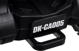 - Bezpieczeństwo: dwuosobowe siedzisko z eko-skóry, pasy bezpieczeństwa, uchwyty dla pasażera