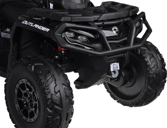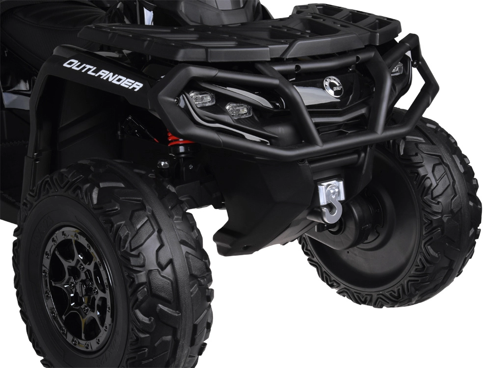 Dwuosobowy elektryczny quad CAN-AM OUTLANDER 4x4 oferuje moc 800 W, akumulator 24 V 7 Ah oraz napęd 2/4 kół, dzięki czemu poradzi sobie także poza utwardzonymi drogami. Miękkie koła EVA, tylne amortyzatory, płynny start i pasy bezpieczeństwa zapewniają komfortową i bezpieczną zabawę. Panel LED z USB/MP3/SD i radiem FM oraz efektowne przednie i tylne oświetlenie LED ucieszą każdego małego kierowcę.