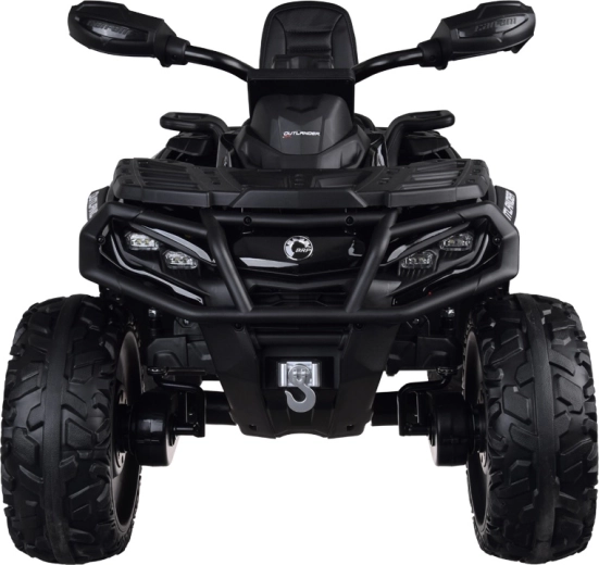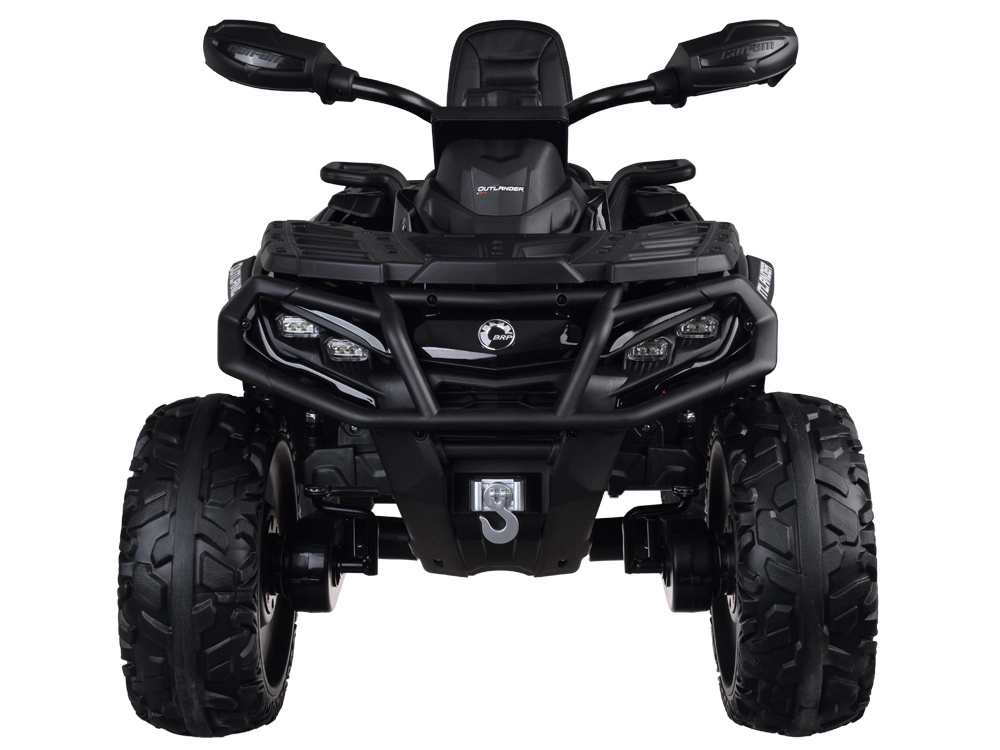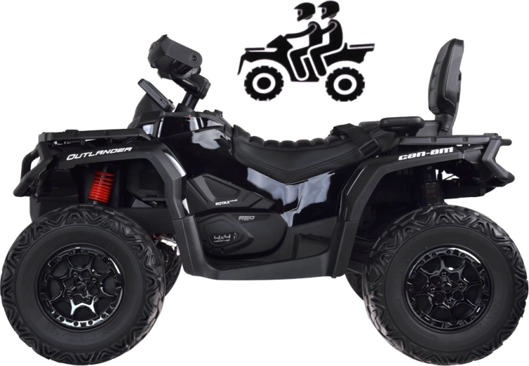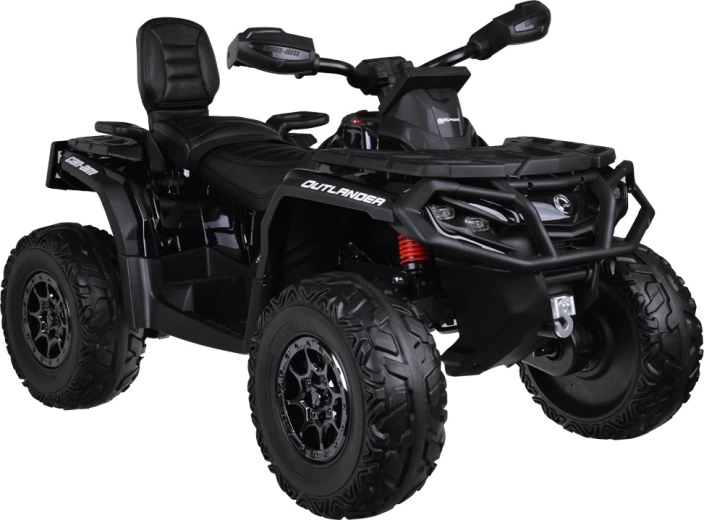 Solidny dziecięcy quad CAN-AM Outlander stworzono do przygód. Cztery silniki 200 W (łącznie 800 W) i przełączany napęd 2 lub 4 kół radzą sobie ze ścieżkami parkowymi i lekkim terenem. Miękkie koła EVA, tylne zawieszenie i płynny start gwarantują komfortową i pewną jazdę, a dwuosobowe siedzisko z eko-skóry z pasami i uchwytami dla pasażera dba o bezpieczeństwo.