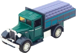 Realistyczny model klasycznej ciężarówki ucieszy małych i dużych fanów pojazdów roboczych. Wiernie odwzorowana kabina z otwieranymi drzwiami, połączenie metalowych części i wysokiej jakości plastiku oraz solidna zabudowa nadają zabawce autentyczny wygląd i długą żywotność. Po pociągnięciu do tyłu pojazd dzięki napędowi pull-back sam rusza do przodu.