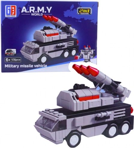 Klocki armia 2w1 to mnóstwo zabawy dla dzieci, które kochają technikę, pojazdy i składanie modeli. Z elementów zbudujesz różne wojskowe maszyny (np. czołg, samolot bojowy, okręt lub pojazd rakietowy), a także transformującego się robota. Dzięki realistycznym kształtom i kolorystyce dzieci mogą tworzyć własne pełne napięcia misje.