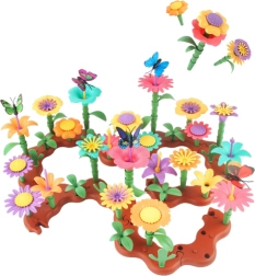 Ten kwiatowy zestaw konstrukcyjny oferuje szeroką gamę kształtów i kolorów do tworzenia różnorodnych kompozycji. Dzieci mogą łączyć korony kwiatów, płatki, pręciki, listki i podstawki, projektując wciąż nowe ogródki, rabatki i bajkowe sceny. Proste łączenie wspiera samodzielność i radość tworzenia.