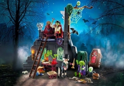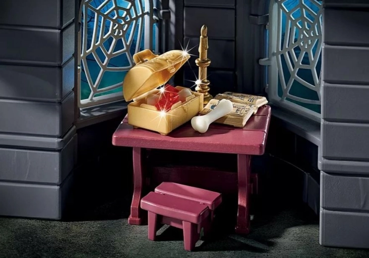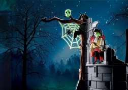 W skład promocyjnego zestawu PLAYMOBIL wchodzą starannie zaprojektowane ruiny zamku, 3 figurki, skrzynia/grobowiec, kilka pająków, nietoperze oraz inne upiorne elementy, które dodają zabawie napięcia i frajdy.