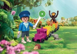 Wybierz się na wesołą wycieczkę pociągiem ze światem PLAYMOBIL Animals & Friends. Kolorowa lokomotywa z zdejmowanym dachem, wagony łączone w dowolnej kolejności oraz urocze zwierzątka jak gepard, myszka, małpka i jeżyk gwarantują godziny kreatywnej zabawy i scenek z małym konduktorem.