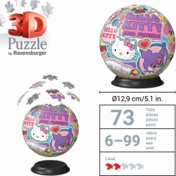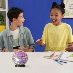 Ta 3D puzzlowa kula z motywem Hello Kitty zamienia układanie w efektowną dekorację do pokoju dziecięcego. Dzięki technologii EasyClick poszczególne plastikowe elementy trzymają się razem z najwyższą precyzją, a efektem jest solidna, gładka kula z wysokiej jakości nadrukiem.