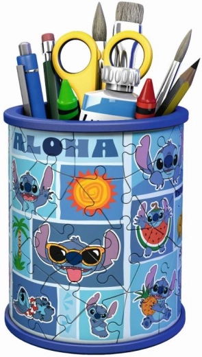 Stylowy stojak na długopisy z ulubioną postacią Stitch ucieszy małych i dużych fanów. Składanie z plastikowych elementów puzzli jest proste i zabawne, a efekt to stabilny i lekki organizer na przybory do pisania.