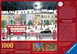 Odkryj urok świątecznej atmosfery z puzzlami RAVENSBURGER „Świąteczny duch Londynu” o 1000 elementach. Ciesz się precyzyjnie wykonanymi elementami, które idealnie do siebie pasują, oraz pięknym motywem zimowego Londynu na chwile relaksu i zabawę z rodziną.