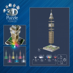 Odkryj zabawę w trzecim wymiarze z 3D puzzle Big Ben marki RAVENSBURGER. Dzięki technologii Easy Click plastikowe elementy precyzyjnie do siebie pasują bez konieczności użycia kleju. Zbuduj ikoniczny londyński zabytek i ciesz się relaksującą i oryginalną frajdą z układania.
