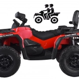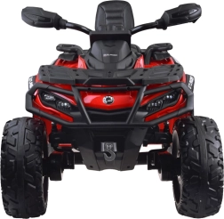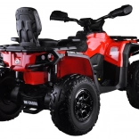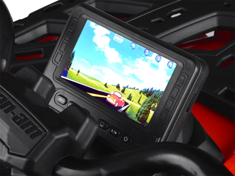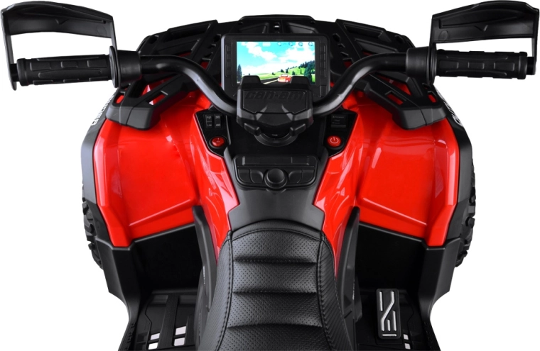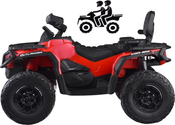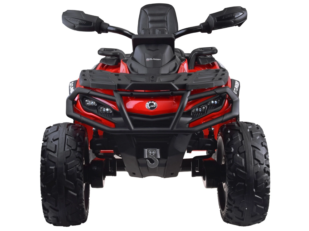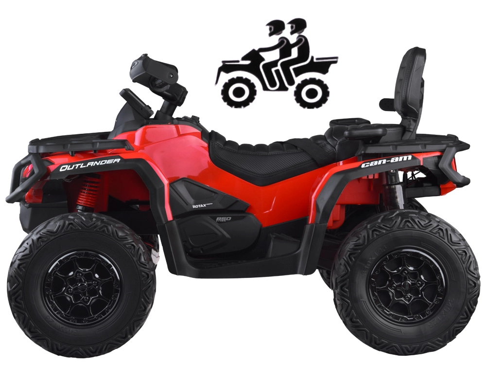 Dwuosobowy dziecięcy mini ATV CAN‑AM OUTLANDER 4x4 oferuje moc 24V/800W, napęd 2×/4×4 przełączany oraz miękkie koła EVA z tylnymi amortyzatorami dla płynnej i komfortowej jazdy. Posiada oświetlenie LED, multimedialny panel LED z USB/MP3/FM oraz miękkie, dwuosobowe siedzisko z eko‑skóry z pasami – idealne do zabawy w ogrodzie i w lekkim terenie.