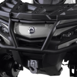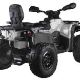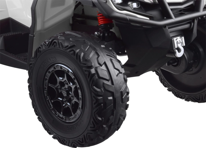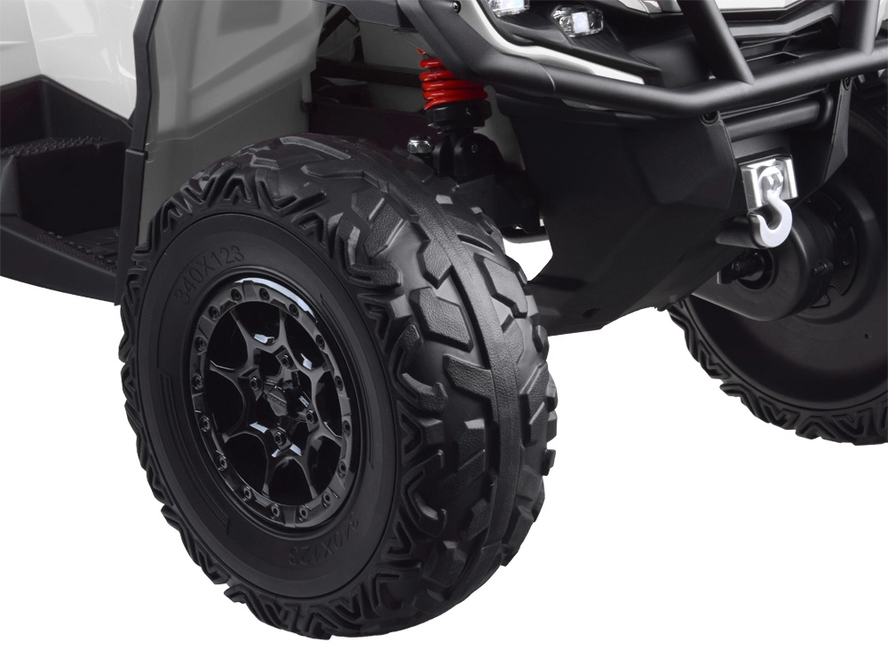 Komfort uzupełnia miękkie dwuosobowe siedzisko z ekoskóry z pasami bezpieczeństwa i oparciem dla pasażera. Oświetlenie LED z przodu i z tyłu zwiększa widoczność, natomiast panel LED z USB, MP3, kartą SD i radiem FM dostarcza ulubionej muzyki w trakcie jazdy. Oczywiście jest też płynny start (soft start) oraz ergonomiczna kierownica z osłonami dla pewnego prowadzenia.
