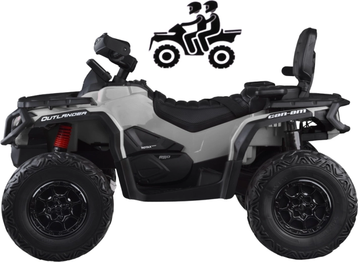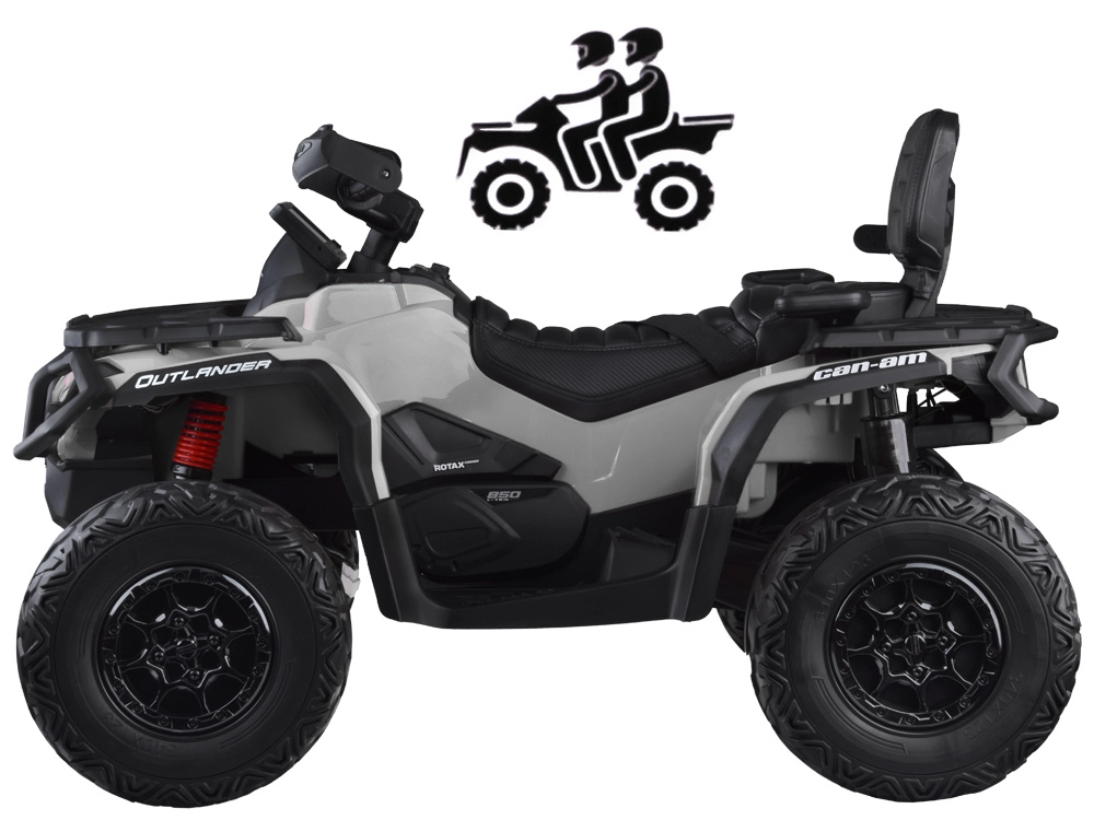 Solidny dziecięcy quad CAN-AM OUTLANDER 4x4 24V został zaprojektowany dla małych miłośników jazdy w terenie. Cztery silniki po 200 W (łącznie 800 W) oraz wybierany napęd na 2 lub 4 koła radzą sobie ze ścieżkami parkowymi i lekkim terenem. Miękkie koła EVA oraz tylne zawieszenie gwarantują cichą, płynną i komfortową jazdę.