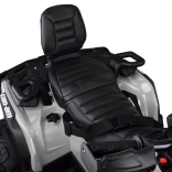 Miękkie siedzisko z ekoskóry z oparciem i pasami bezpieczeństwa oferuje wygodę i wsparcie dla kierowcy oraz pasażera.