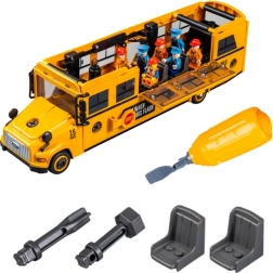 Zestaw szkolnego autobusu wspiera małą motorykę, cierpliwość i logiczne myślenie. Dzieci mogą samodzielnie montować i demontować poszczególne części, przestawiać ruchome siedzenia i poznawać podstawy konstrukcji oraz mechaniki. Dzięki napędowi ciernemu autobus po popchnięciu pojedzie sam, a światła i dźwięki (silnik, klakson, dzwonki, jazda) spotęgują realizm zabawy.