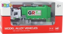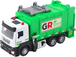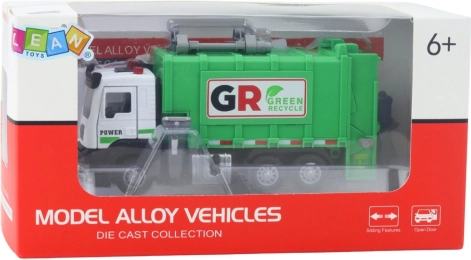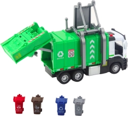 Model ma otwieraną tylną klapę oraz mechanizm podnoszenia kontenerów, więc można realistycznie załadowywać i wyładowywać odpady. Cztery kolorowe kosze zachęcają dzieci do segregacji odpadów i uczą dbałości o środowisko. Solidna konstrukcja z plastiku uzupełniona metalowymi częściami wytrzyma nawet intensywną zabawę.