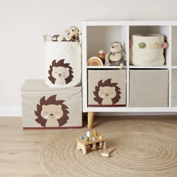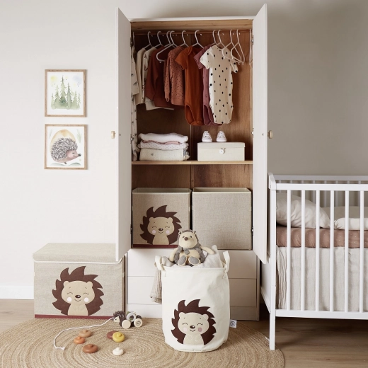 Kosz BIECO z uroczym motywem jeża Piksi jest idealny na zabawki, pranie lub dziecięce akcesoria. Dzięki mocnemu płótnu świetnie trzyma kształt, a jednocześnie pozostaje lekki i łatwy do przenoszenia. Prosty, ponadczasowy design pasuje do każdego pokoju dziecięcego i salonu.
