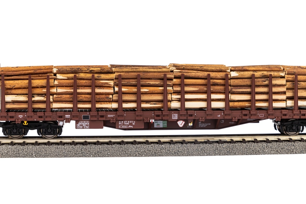 Realistyczny wagon kłonicowy Roos-t642 firmy Piko w skali H0 do transportu kłód drzewnych oferuje detaliczne wykonanie, nowość 2024 oraz znakomite właściwości jezdne. W zestawie autentyczny ładunek drewna, gniazdo NEM z krótkim sprzęgiem i eksploatacja na zasilaniu DC.