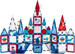 Zbuduj rakiety, pojazdy, wysokie wieże oraz fantastyczne konstrukcje 3D inspirowane kosmosem. Magnetyczne elementy z nadrukami astronautów, rakiet i planet motywują dzieci do kreatywnej zabawy i tworzenia opowieści. Przezroczyste, wielobarwne części świetnie wyglądają w świetle, a dzięki silnym magnesom konstrukcje pozostają stabilne.
