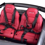 Elegancja lakierowanej powierzchni, czerwone siedzenia z eko skóry oraz autentyczne elementy, takie jak tylny spojler, wyjmowane dywaniki z logo Porsche i koła EVA dla cichej i stabilnej jazdy. Otwierane drzwi ułatwiają wsiadanie, a wnętrze jest wystarczająco szerokie dla dwojga młodszych dzieci lub jednego starszego (udźwig do 50 kg).