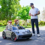 Spełnij dziecięce marzenie o sportowej jeździe z oficjalnie licencjonowanym elektrycznym autem PORSCHE 911 GT3. Ten dwuosobowy model zachwyca lakierowaną karoserią, czerwonymi siedzeniami z eko skóry, oświetleniem LED oraz dopracowanymi detalami. Wydajne 2× bezszczotkowe silniki 24 V 180 W, akumulator 24 V 10 Ah i napęd na tylne koła zapewniają płynną i dynamiczną jazdę, a 5‑punktowe pasy, płynny start oraz zdalne sterowanie rodzicielskie dbają o bezpieczeństwo.