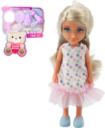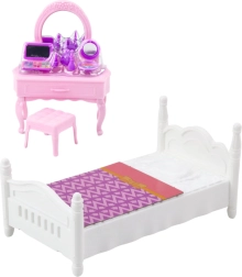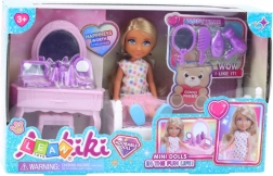 - Lalka ANLILY 13 cm, łóżeczko z pościelą, toaletka z lustrem, stołeczek, zestaw akcesoriów