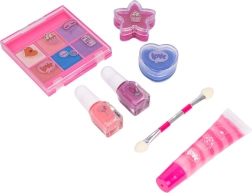 Ten czarujący zestaw do makijażu dla dzieci pozwoli małym wizażystkom bezpiecznie testować pierwsze looki w ulubionych różowych i fioletowych tonach. Produkty zaprojektowano z myślą o delikatnej dziecięcej skórze i nie zawierają szkodliwych substancji. Dzięki zabawnemu designowi i bogatemu wyposażeniu dzieci łatwo opanują podstawy makijażu.