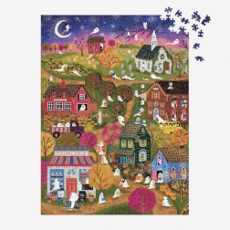 Metaliczne puzzle Straszliwa wioska zachwycają atrakcyjnym motywem ze specjalnym metalicznym efektem, który pięknie połyskuje pod różnymi kątami światła. Idealne dla miłośników designerskich puzzli oraz jako oryginalny prezent.