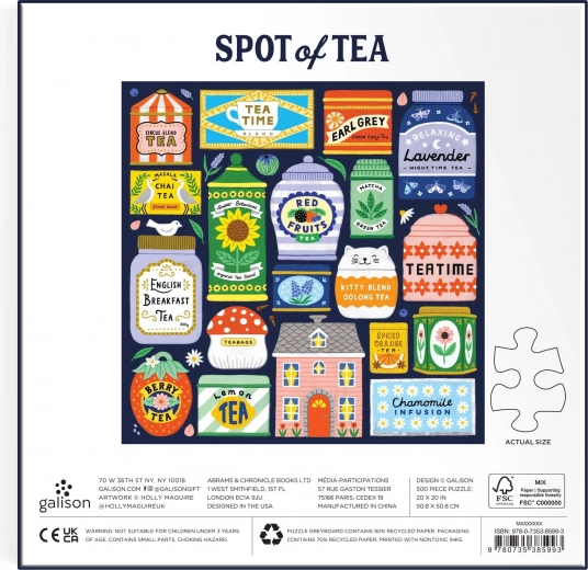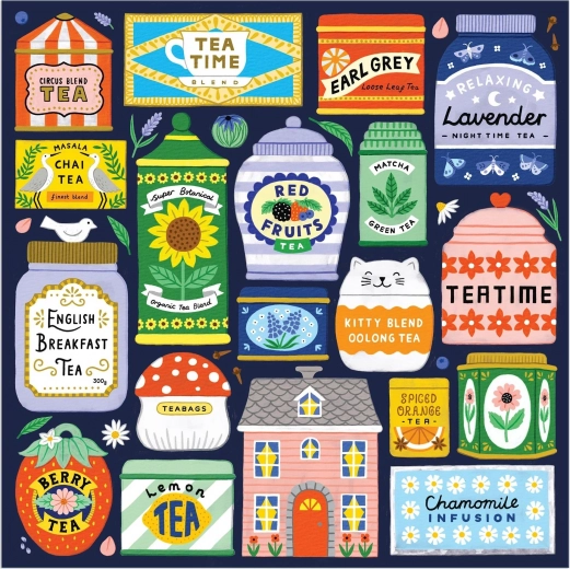Odkryj estetyczną przyjemność układania z motywem stylowej kolekcji herbat. Dzięki 500 elementom puzzle stanowią przyjemne wyzwanie, które świetnie sprawdzi się w spokojnych chwilach w domu. Kwadratowy format o wymiarach ok. 51 × 51 cm wygląda harmonijnie i po ułożeniu pięknie prezentuje się na ścianie lub półce.