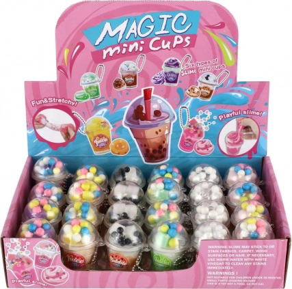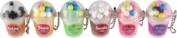 Zabawny breloczek z mini slime w kubeczku ucieszy małych i dużych. Każdy kubeczek ma przezroczystą pokrywkę, kolorowy slime i drobne dekoracje przypominające kuleczki, owoce lub piankę. Dzięki metalowemu łańcuszkowi dzieci łatwo przypną go do kluczy, plecaka lub piórnika. Slime jest miękki, elastyczny i świetny do ugniatania oraz rozciągania, idealny jako drobny prezent albo kolekcjonerski gadżet.