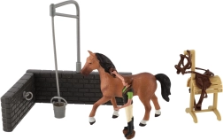 - Plastikowy koń i akcesoria (wyposażenie do zabawy w farmę)