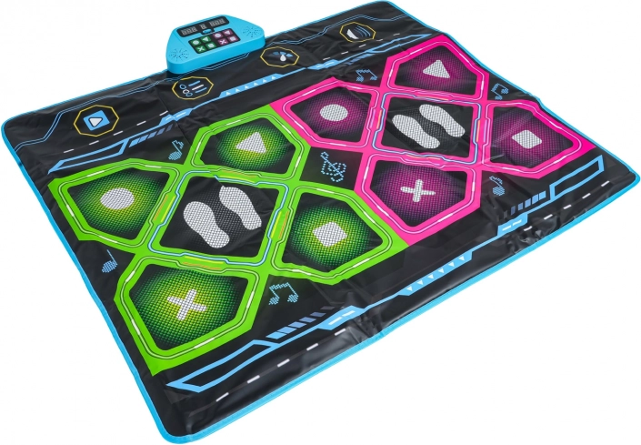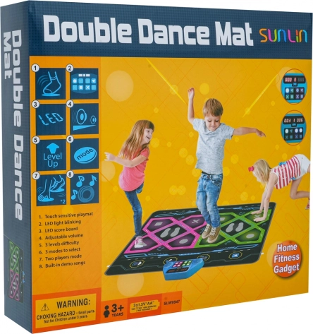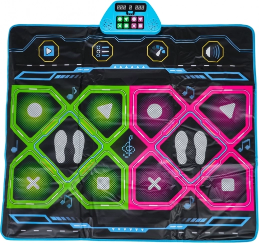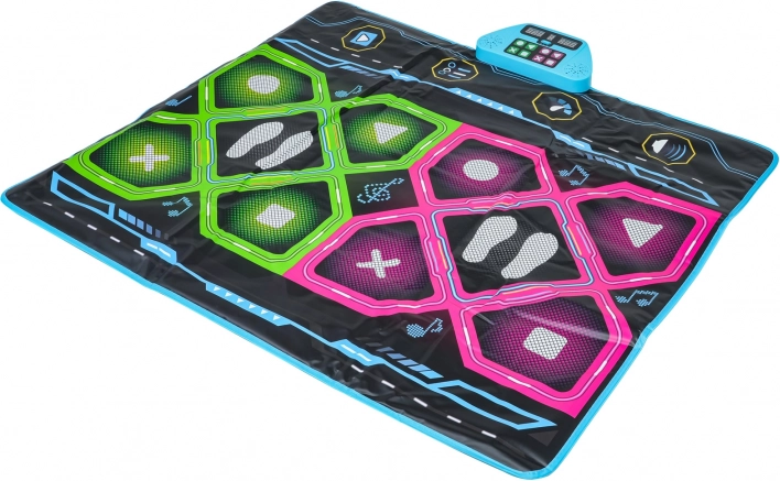 Ta dwuosobowa muzyczna mata taneczna zamieni Twój dom w zabawne studio tańca. Dzięki przestronnej powierzchni do tańca jednocześnie mogą tańczyć dwoje dzieci, śledzić podświetlany wyświetlacz i starać się trafić w pola dotykowe z symbolami koła, trójkąta, krzyżyka i kwadratu. Wyświetlacz pokazuje punkty i poziomy gry, a całości towarzyszą efekty dźwiękowe i świetlne.