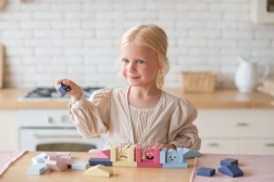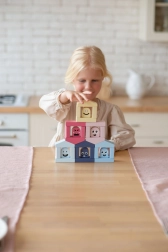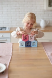 Układanka Cubika Pastel kolorowe domki daje dzieciom wiele możliwości do swobodnej zabawy i ukierunkowanej nauki. Każdy z sześciu domków ma swojego „mieszkańca” w odpowiadającym kolorze – zadaniem jest znaleźć właściwe połączenie i umieścić postać w domku. Dzięki temu dzieci naturalnie ćwiczą rozróżnianie kolorów, sensomotorykę i myślenie logiczne. Z klocków można łatwo budować także inne konstrukcje architektoniczne, rozwijając kreatywność i wyobraźnię.