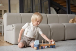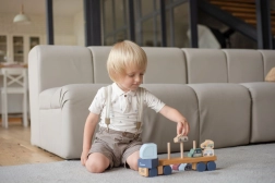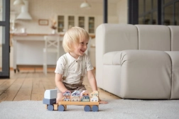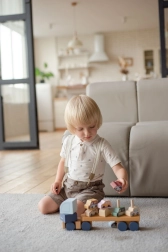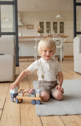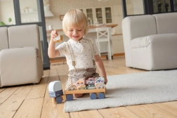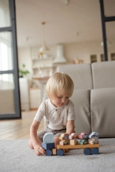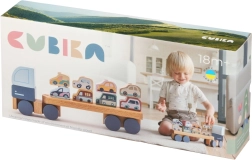 Drewniana układanka Cubika w pastelowych odcieniach ucieszy dzieci i rodziców precyzyjnym wykonaniem z klonu i buku oraz bezpiecznymi farbami na bazie wody. Elementy łatwo się chwytają i składają, dzięki czemu dzieci w naturalny sposób uczą się koordynacji i cierpliwości. Ciężarówka o długości 32 cm wygodnie przewiezie wszystkie 8 małych autek.
