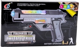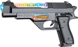 Zabawny pistolet-zabawka na baterie zapewni dzieciom godziny dynamicznej rozrywki. Po naciśnięciu spustu zapalają się kolorowe światła LED i rozlegają się realistyczne dźwięki strzałów. Wytrzymałe wysokiej jakości plastikowe wykonanie, ruchome elementy oraz kompaktowy rozmiar 24 cm sprawiają, że to idealny dodatek do kreatywnej zabawy i rozwijania wyobraźni.