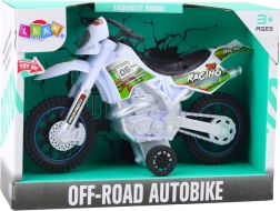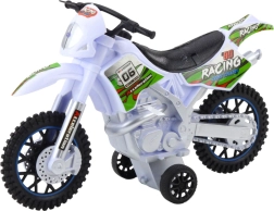 Odkryj zabawę na pełnych obrotach z tą realistyczną zabawką motocrossową w białym kolorze. Oferuje efekty świetlne i dźwiękowe, solidną konstrukcję oraz terenowe koła dla stabilnej jazdy. Świetna dla małych fanów motocykli off-road, którzy chcą przeżyć dynamiczną i realistyczną zabawę.