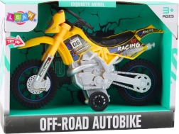 Zabawkowy motocykl motocross dla małych miłośników jazdy terenowej oferuje realistyczny design, efekty świetlne i dźwiękowe oraz trwałą konstrukcję. Duże terenowe koła i wyrazisty żółty kolor z wyścigowymi akcentami podkreślają sportowy wygląd i gwarantują zabawę pełną akcji.