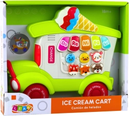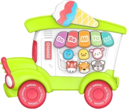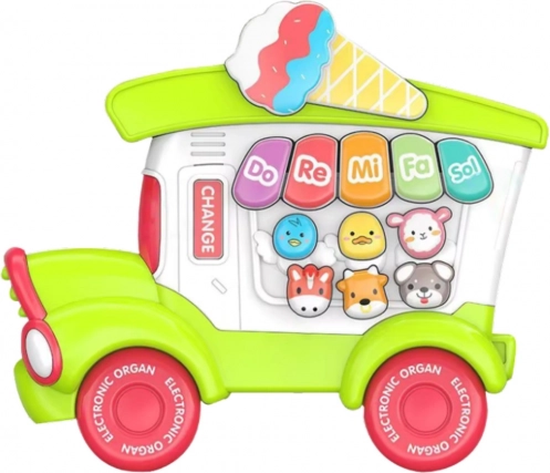 Pianinko inspirowane wozem z lodami natychmiast przyciąga wzrok wyglądem i przyjaznymi dźwiękami. Dzieci łatwo przyswoją podstawy muzyki dzięki klawiszom z dźwiękami Do Re Mi Fa Sol i wesołym melodiom. Zabawa wspiera koordynację ruchową, pamięć i wyobraźnię.