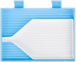 Rowkowane miski z lejkiem ułatwiają przesianie diamentów i precyzyjne wsypywanie z powrotem do przegródek bez rozsypywania.
