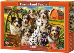 Zrelaksuj się przy układaniu wysokiej jakości puzzli z motywem wesołych piesków na wsi. Zawiera 1000 elementów, oferuje ostre i nasycone kolory, a po ułożeniu ma wymiary ok. 68 × 47 cm.