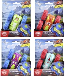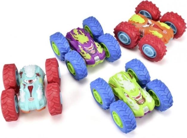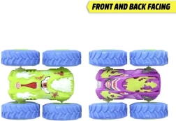 Dzięki dwustronnej konstrukcji i dużym kołom auto potrafi robić flipy, fikołki i jechać po przewróceniu.