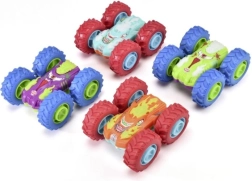 To kaskaderskie auto jest stworzone dla dzieci, które kochają akcję. Dzięki napędowi bezwładnościowemu wystarczy popchnąć, puścić i patrzeć, jak auto pędzi do przodu, przewraca się i kontynuuje jazdę nawet po odwróceniu. Ekstra duże koła zapewniają świetną stabilność, przyczepność i łatwe pokonywanie nierówności.