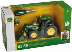 Odkryj frajdę z budowania i zabawy z realistycznym modelem traktora John Deere 6215 R. Złóż podwozie, nałóż opony, dodaj siedzenie, kabinę kierowcy i maskę silnika – w kilka chwil masz gotowy funkcjonalny model z ładowaczem czołowym.