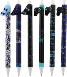 Odkryj zestaw wymazywalnych długopisów kulkowych w 6 kolorach, który zachwyci wszystkich fanów gier wideo. Każdy długopis ma oryginalny topper w kształcie pada, deskorolki, muszki lub skrzydeł i jest ozdobiony nowoczesnymi nadrukami w czarno-niebieskiej palecie. Dzięki wymazywalnemu tuszowi łatwo poprawisz drobne błędy bez smug.