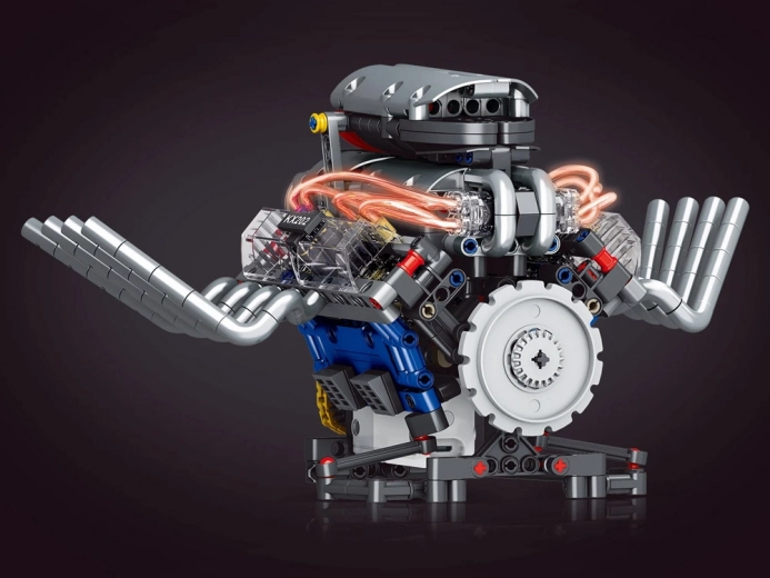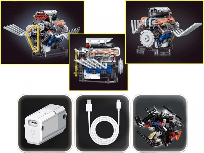Techniczny zestaw silnika z akumulatorem, światłem i ruchem. 665 elementów, ładowanie USB, realistyczne funkcje. Świetna edukacyjna zabawa dla pasjonatów techniki.